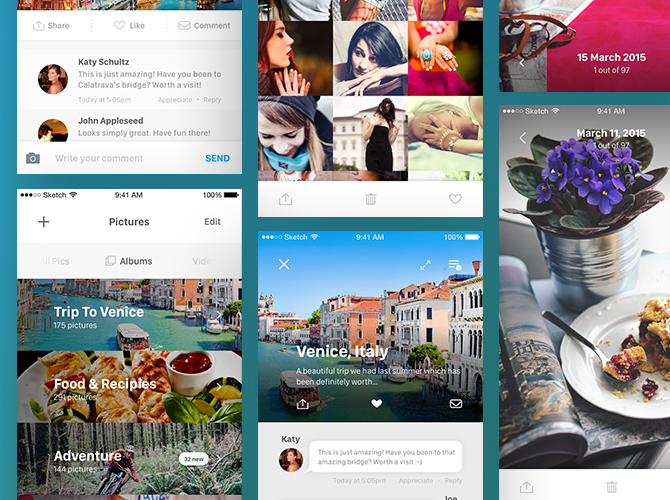 A brand new Mobile UI KIT made in Sketch composed of 14 top quality, pixel-perfect and retina ready screens lovely handcrafted to boost your next mobile project.